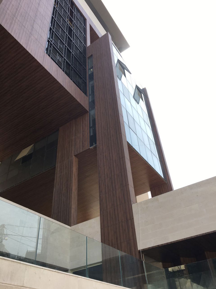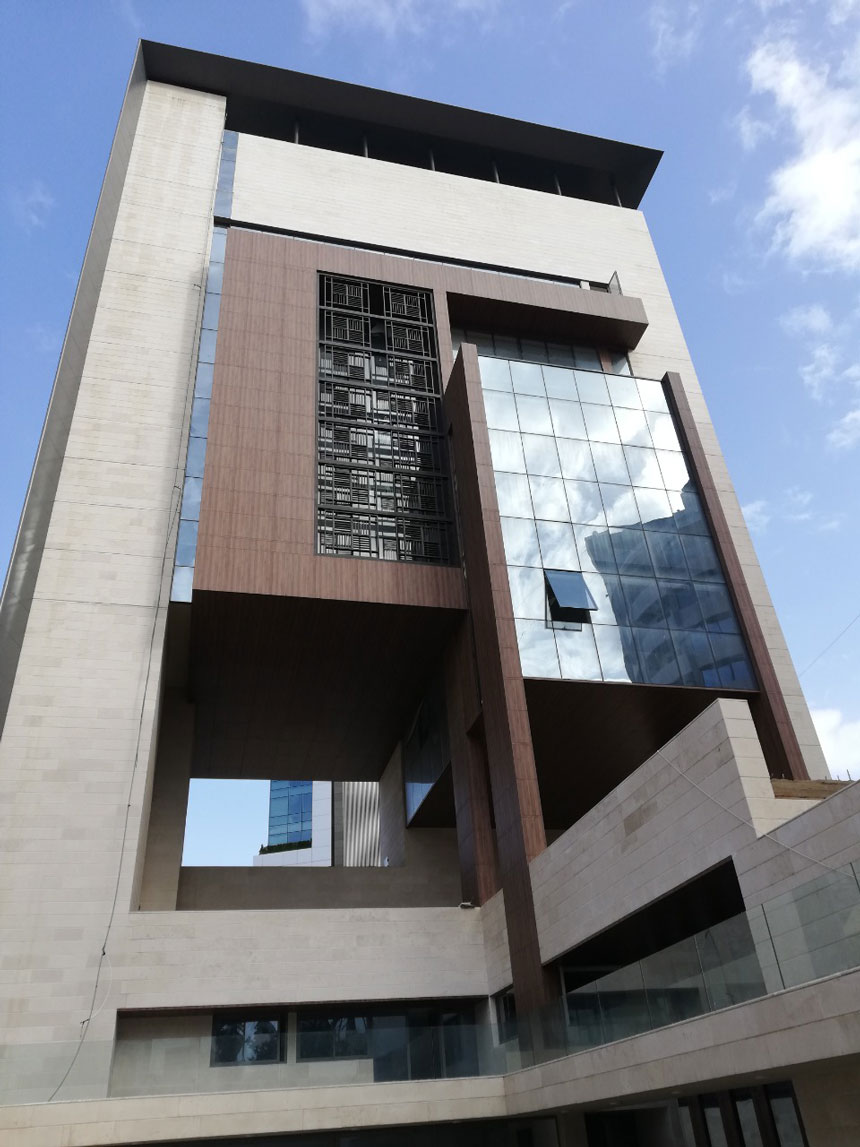 This project is designed as an eco-friendly building composed of eight municipal stories, one clinic story, three basements, and a large public garden. The total built-up area is around 7,000 m2.